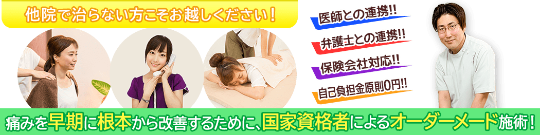 通院していてもなかなか後遺症が改善されないという方は、ぜひ当院までご相談ください。